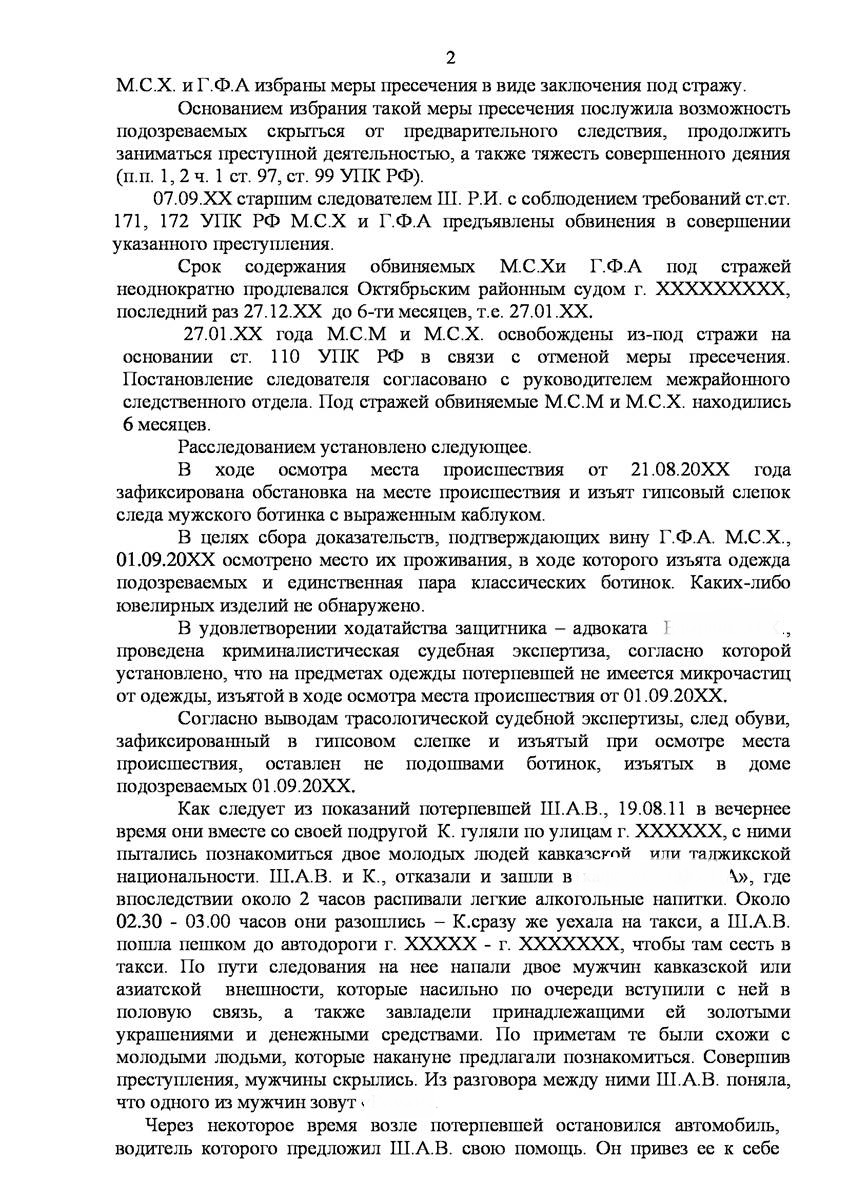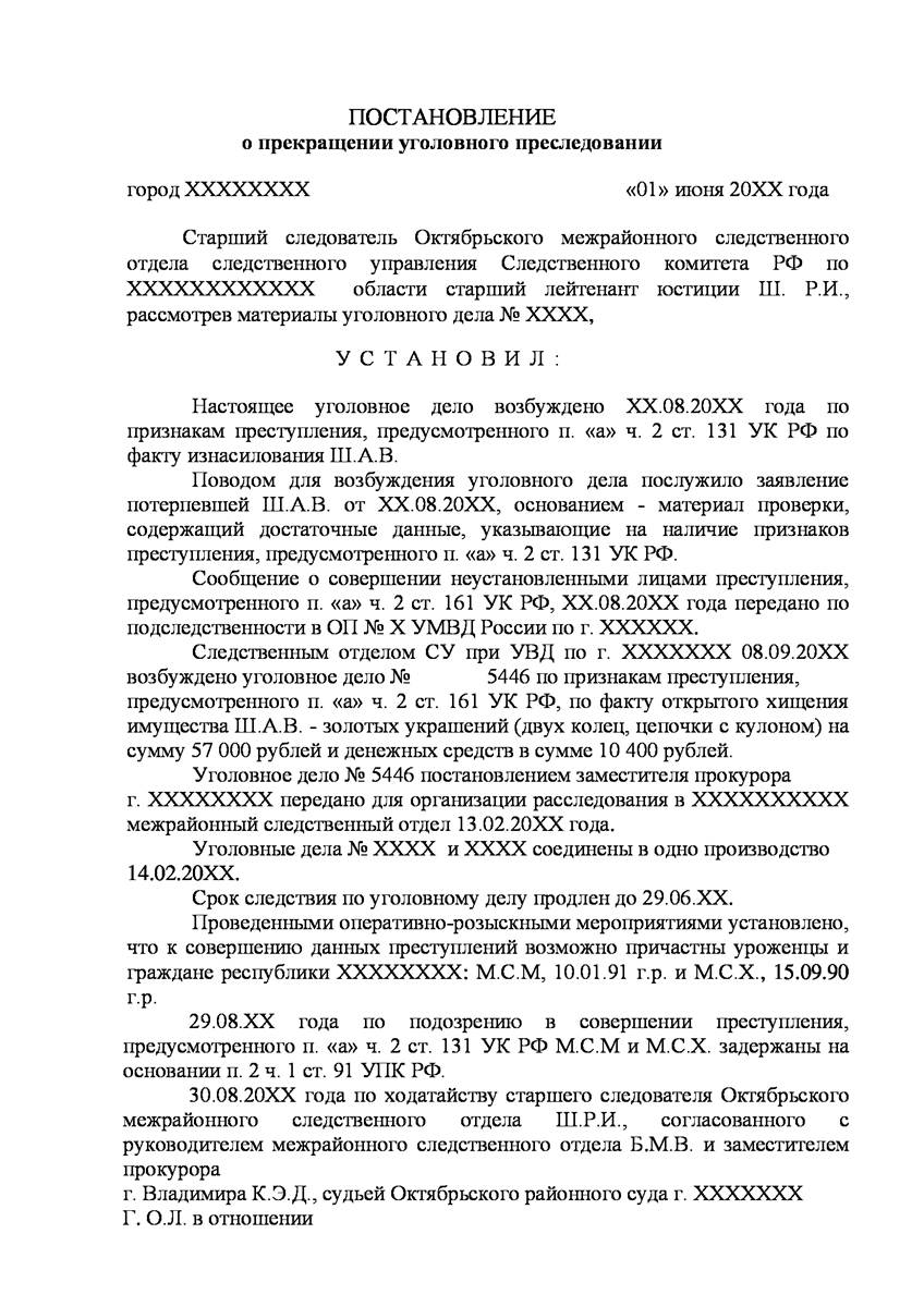Адвокаты в Тольятти добился прекращения уголовного дела на стадии предварительного расследования по реабилитирующим основаниям в отношении двух граждан иностранного государства обвиняемых органами предварительно следствия в совершении преступления предусмотренного п. «а» ч.2 ст.131 УК РФ (изнасилование совершенное группой лиц) и п."а" , п."г" ч.2 ст.161 УК РФ (грабёж), наказание за которое предусматривает лишение свободы от восьми до пятнадцати лет, то есть преступление, которое в соответствии с ч.5 ст.15 Уголовного Кодекса Российской Федерации отнесено к категории особо тяжких преступлений.